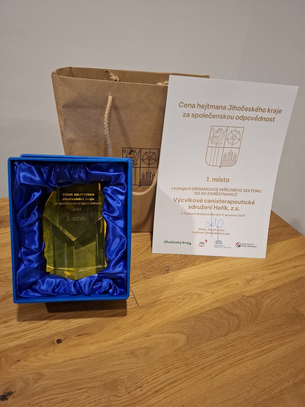 1. místo v Ceně hejtmana Jihočeského kraje za společenskou odpovědnost v kategorii Organizace veřejného sektoru, neziskové a veřejně prospěšné organizace do 50 zaměstnanců a je to pro nás obrovská čest! ![]()