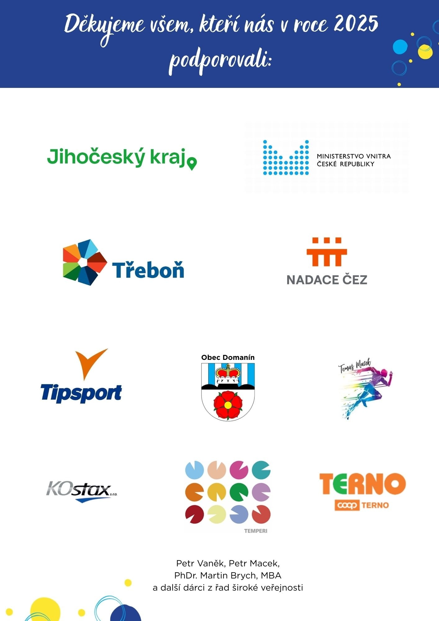 Děkujeme našim donátorům, sponzorům a partnerům 🐾💛