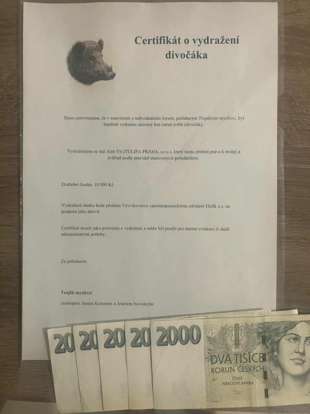 Velkým a milým překvapením pro nás dnes byl také předaný dar ve výši 10 000 Kč od pana Jana Kefurta zastupujícího Trojské myslivce. Velmi si tohoto gesta vážíme a upřímně děkujeme.![]()