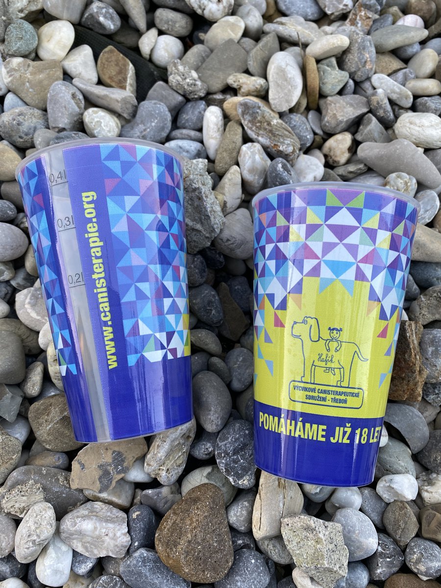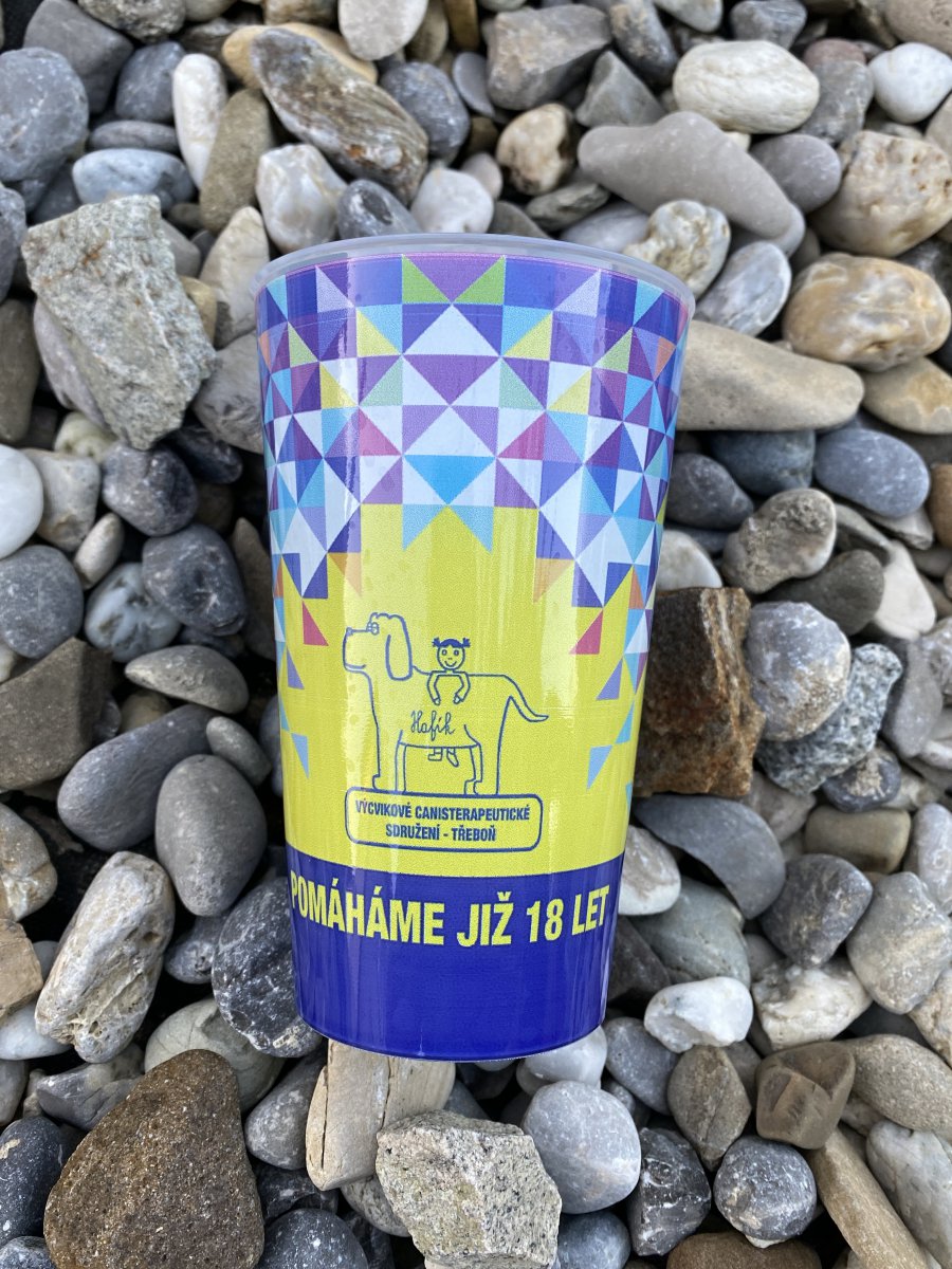 S barevnou grafikou Hafíka najdete i extra pevný a několikanásobně použitelný plastový kelímek. Kelímek je velmi odolný, hygienický, lehce omyvatelný a stohovatelný.